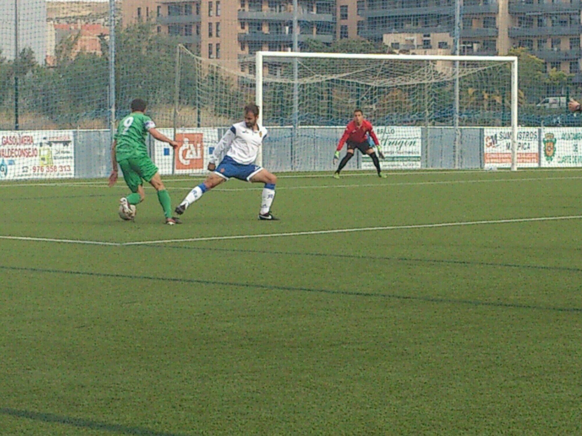 El Real Zaragoza B ha cosechado una sufrida victoria al imponerse al Cuarte por 1 a 3 con dos goles de Suárez y uno de Antón.Como ya es habitual, el Real Zaragoza B se hizo con el balón nada más empezar el partido mientras que el Cuarte esperaba de forma muy ordenada para poder salir a la contra e incomodando al conjunto de Emilio Larraz de todas las formas posibles. Una vez más el conjunto filial dió muestra de estar espesos a la hora de efectuar el pase final mientras que el Cuarte tenía las ideas mucho más claras llegando en dos ocasiones con mediana claridad a la meta de Whalley. En el minuto 33, Robert Simón hacia un claro penalty por manos que el conjunto del Cuarte no desaprovechó para adelantarse en el marcador. El gol curiosamente expoleó a los locales y trajo nerviosismo al conjunto de Emilio Larraz que no sabía como llegar a la meta rival.